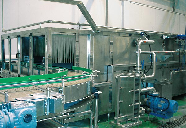 噴淋冷卻系統消化吸收同類設備技術并根據用戶產品特點全新設計而成,采用熱水殺菌和逐步降溫冷卻的工藝,殺菌及冷卻時間根據用戶需求變頻調速,自動控制高度自動化。噴淋冷卻設備配有溫度控制系統及冷、熱水循環系統。噴淋冷卻系統應用于各種瓶裝、罐裝飲料等食品的常壓巴式殺菌,也可用于 PET瓶灌裝茶飲料的冷卻和含氣飲料的溫瓶。