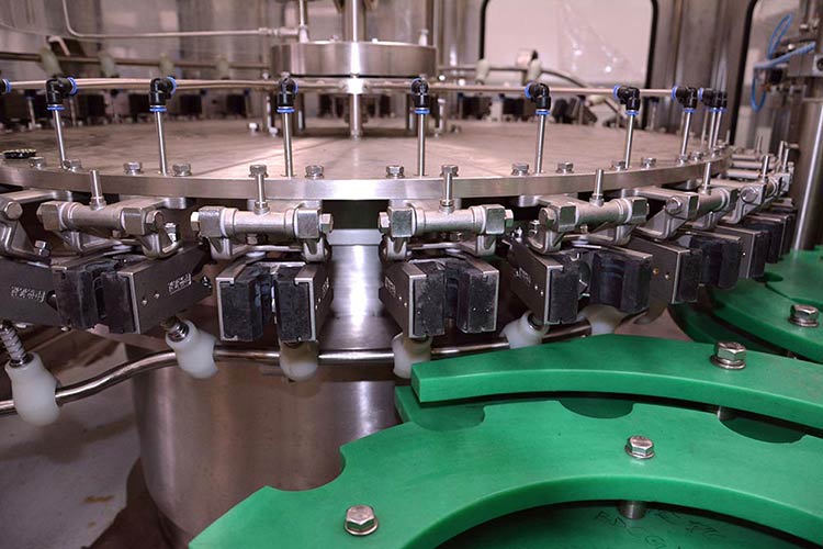 1.灌裝快、準、穩,鉗夾與瓶口螺紋以上部分不接觸,并設有噴頭,使瓶內壁沖洗充分、無死角,在采用了新一代不銹鋼翻轉式瓶夾運行更為穩定可靠,瓶頸懸掛運行工態設計,從而使瓶在高速運行狀態下平穩、可靠,同時大大減少了變更件的數量使更換瓶型時更加方便、快捷。