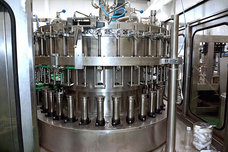 玻璃瓶灌裝設備是中浩機械參照國外先進灌裝機技術并結合本公司多年生產經驗進行改造和創新的產品,用于玻璃瓶皇冠蓋、鋁蓋、三旋蓋的水灌裝及封口。玻璃瓶灌裝設備可完成壓瓶,灌裝,封口等全部工序,其設計科學合理、外型美觀、功能齊全、操作維修方便,自動化程度高,是中小型飲料生產廠家的理想設備。玻璃瓶灌裝設備采用等壓灌裝原理,灌裝速度快、液面控制穩。
