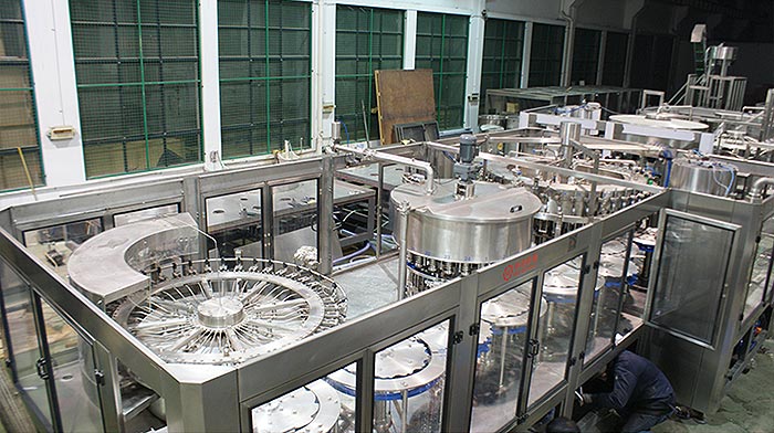 全自動碳酸飲料灌裝機械將沖瓶單元,灌裝單元,擰蓋單元結合在一臺機器內,自動完成洗滌、灌裝、封蓋。